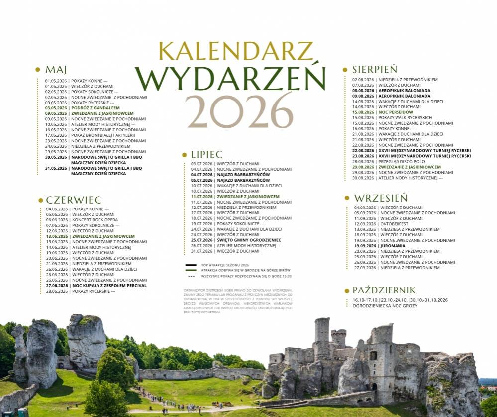Dodatkowo w soboty jest możliwość zapisania się na nocne zwiedzanie zamku w cenie 60zł. Dojazd z Krakowa zajmuje nieco ponad godzinę i auto możemy zaparkować na parkingu w Podzamczu – wiosce pod Zamkiem Ogrodzieniec. Oprócz zjawiskowych ruin na terenie otaczającym zamek znajdują się również: